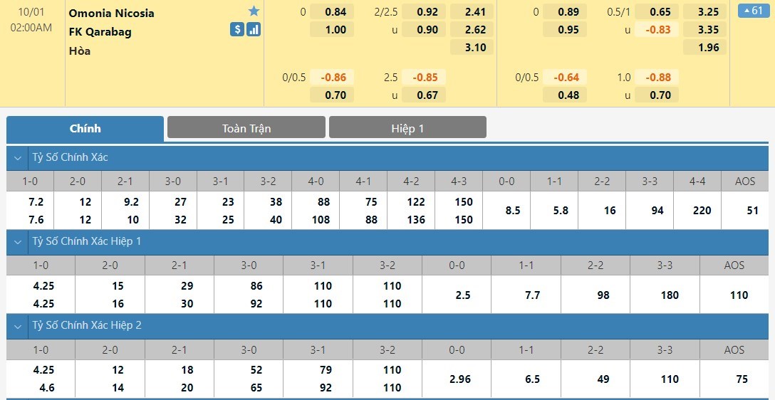 Bước sang lượt trận thứ 2, Omonia Nicosia sẽ chơi trên sân nhà của mình đón tiếp Qarabag FK. Đây tiếp tục là 1 trận đấu cân tài cân sức khó lường và nhà cái đưa ra mốc tỷ lệ hòa được thua đã phản ánh chính xác thực lực ngang ngửa của hai đội. Omonia Nicosia dù chơi trên sân nhà nhưng cũng không được đánh giá quá cao về khả năng giành chiến thắng. Lý do cũng đến từ việc phong độ không mấy thuyết phục của đội chủ nhà. Cụ thể, Omonia Nicosia chỉ giành được 1 chiến thắng trong 4 trận gần đây. Xét theo góc độ tỷ lệ châu Á, đội bóng này thua kèo ở 5/6 trận gần nhất. Đây rõ ràng không phải những thông số tích cực.