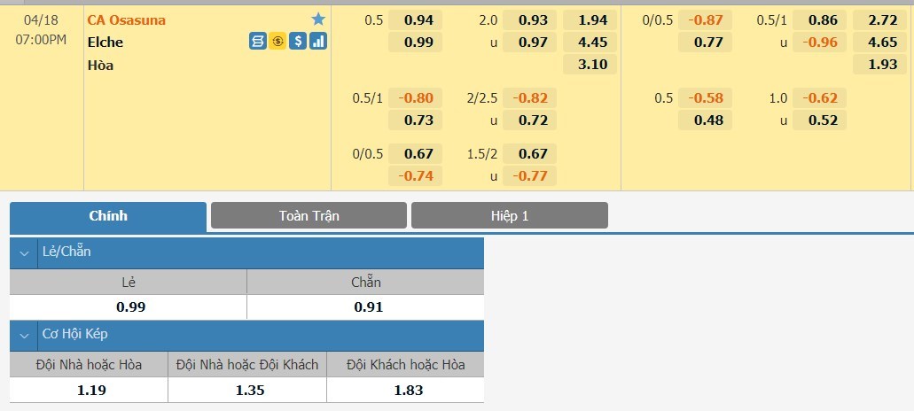 Tip kèo tỷ số hiệp 1: Osasuna 0-0 Elche
