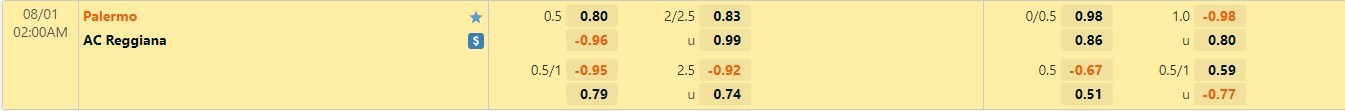 Nếu như Palermo đã có được cho mình 4/5 trận đấu gần nhất mang về 1 bàn thắng trong hiệp đấu đầu tiên thì Reggiana chỉ có 1 lần làm được điều này. Với tỷ lệ kèo hiệp 1 là đồng banh thì người chơi nên tin tưởng vào một kết quả dẫn bàn dành cho Palermo để mang về cơ hội thắng cao hơn.