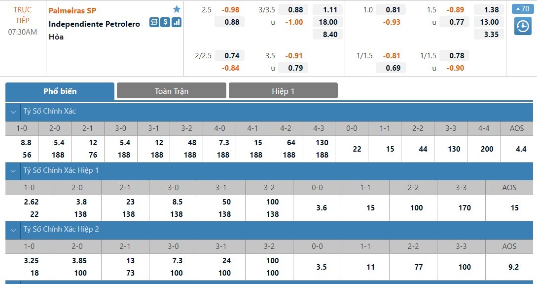 Khó khăn càng tăng lên gấp bội với Independiente Petrolero khi mà vòng tới họ phải hành quân tới sân của Palmeiras. Nên nhớ rằng đại diện của Brazil đã toàn thắng ở cả 13 trận sân nhà gần nhất. Vì vậy khả năng Independiente Petrolero có điểm ở vòng tới là gần như không thể xảy ra. Chủ nhà vốn vẫn được biết đến là đội có lối đá tấn công đẹp mắt nhưng cũng không kém phần hiệu quả. Và những gì diễn ra ở vòng đấu mở màn đã cho thấy nhận định trên là không hề sai. Vì vậy ở kèo tài xỉu của trận cầu tới thì tài vẫn sẽ là lựa chọn mang tới cơ hội ăn cao hơn cho người chơi.