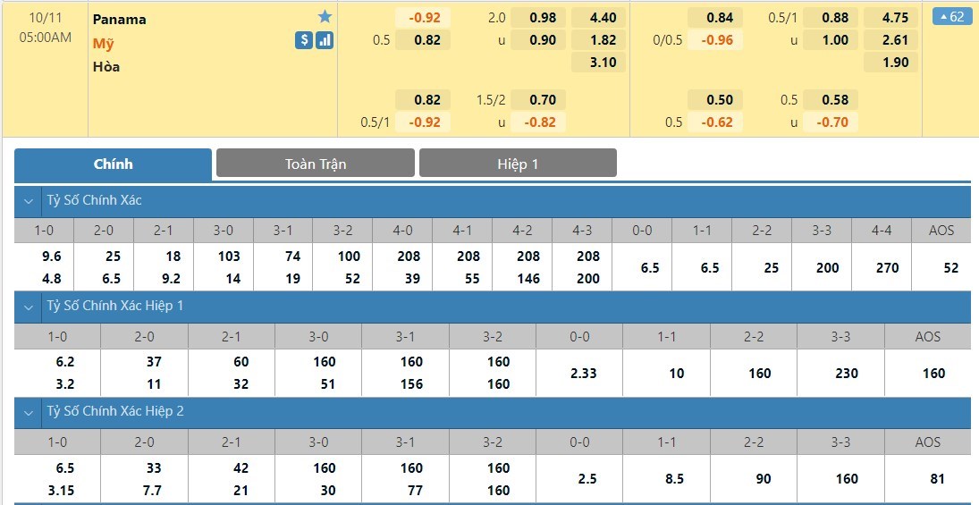 Tip kèo tỷ số hiệp 1: Panama 0-1 Mỹ