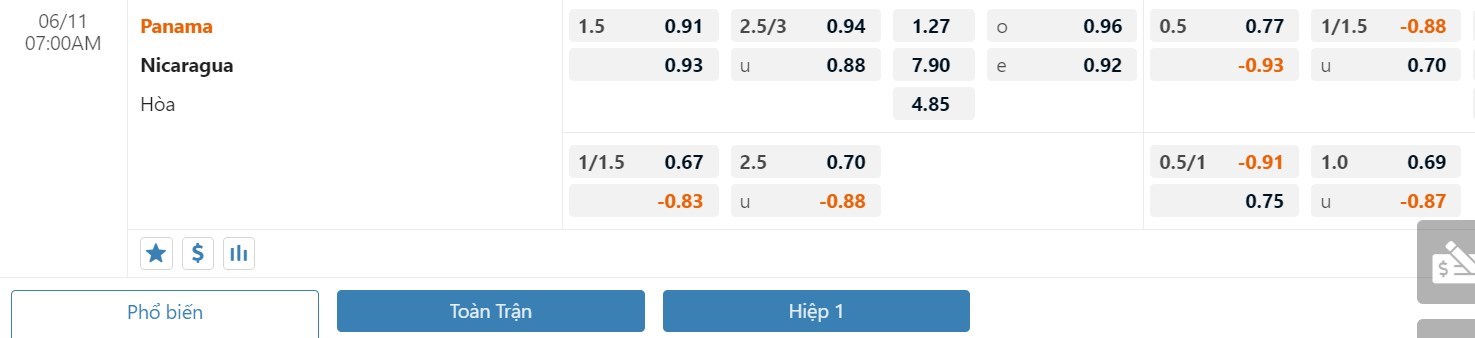 Tip kèo tỷ số hiệp 1: Panama 2-0 Nicaragua