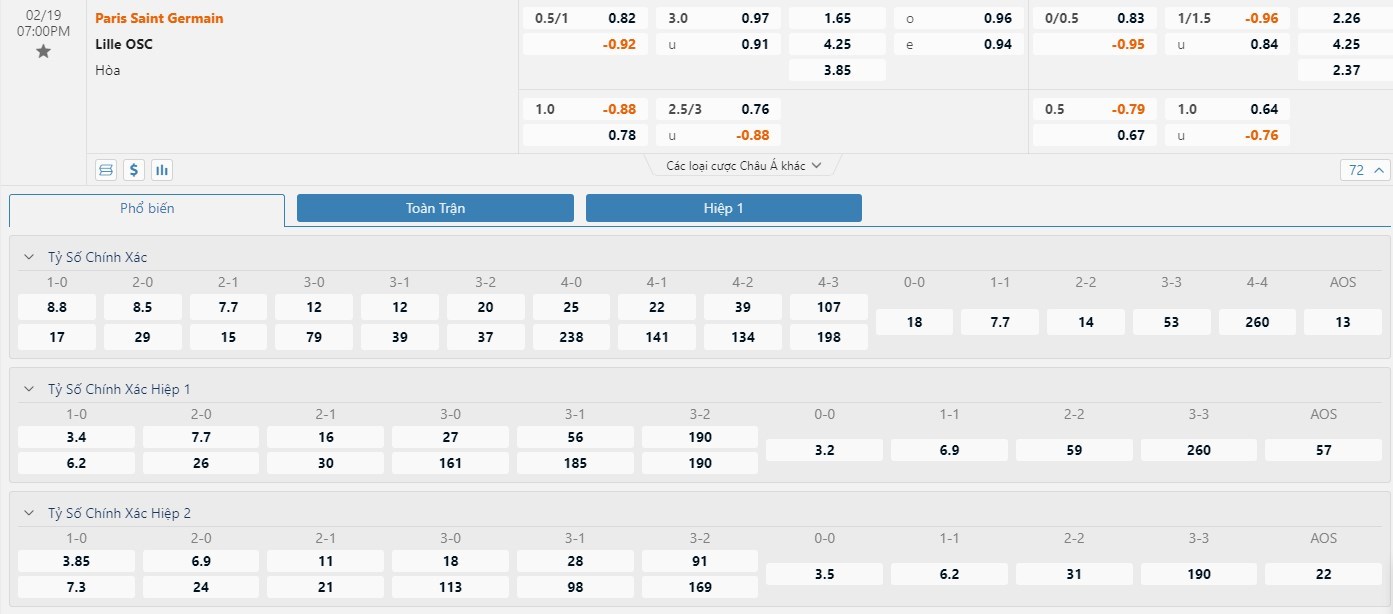 Nhà cái vẫn dành cho Paris Saint Germain đánh giá rất cao trong trận đấu này. Thực tế thì trong 3 lần đối đầu trực tiếp gần nhất giữa hai đội, Paris Saint Germain đều giành chiến thắng. Trong số đó có 2 trận thắng mang tính hủy diệt của Paris Saint Germain. Chính ở giai đoạn lượt đi mùa giải năm nay, Paris Saint Germain đã có chiến thắng đậm 7-1 trên sân nhà của Lille OSC. Vì lẽ đó, với mốc chấp -3/4 trái nhà cái đặt ra thì ô cược Paris Saint Germain vẫn là kênh đầu tư mà người chơi nên hướng tới. Sau chuỗi 3 trận liền toàn thua thì Paris Saint Germain cần một chiến thắng để cởi bỏ áp lực tâm lý.