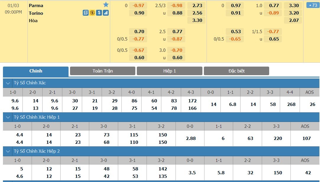 Tip kèo tỷ số hiệp 1: Parma 0-1 Torino