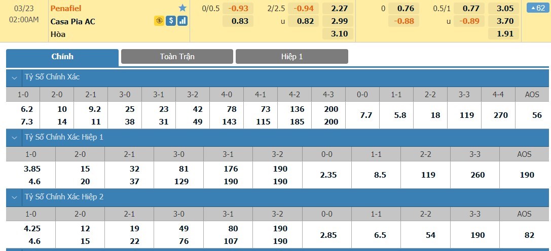 Tip kèo tỷ số hiệp 1: Penafiel 0-0 Casa Pia