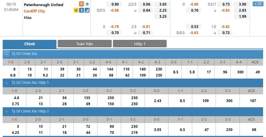 Tip kèo tỷ số hiệp 1: Peterborough 1-1 Cardiff City