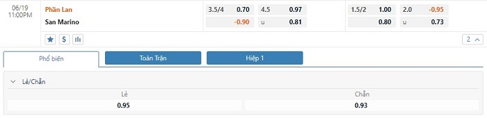 Tip kèo tỷ số hiệp 1: Phần Lan 3-0 San Marino