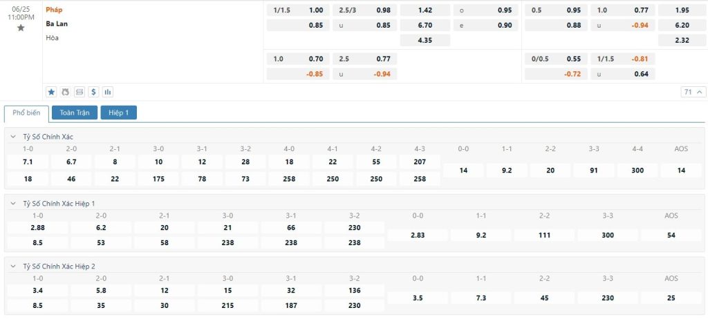 Tip kèo tỷ số hiệp 1: Pháp 1-0 Ba Lan