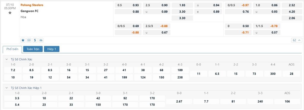 Pohang vẫn là những người nhận được đánh giá cao hơn từ đội ngũ chuyên môn với mốc chấp -1/2 trái trận đấu này. Song không thể xem thường khả năng tạo ra bất ngờ của Gangwon. Đội khách trước chuyến hành quân đến gặp Pohang Gangwon đang sở hữu thành tích khá ấn tượng trong những lần hành quân xa nhà gần đây. Cụ thể, Gangwon chỉ để thua 1 trận trong 5 trận sân khách gần nhất, còn lại họ mang về 4 chiến thắng. Dự báo màn so tài sắp tới, Gangwon sẽ mang tới thách thức không nhỏ dành cho đội chủ nhà Pohang. Thực tế, Pohang chỉ thắng đúng 1 trận trong 4 trận sân nhà gần nhất tại giải VĐQG Hàn Quốc. Vậy nên, với kèo đấu này, người chơi nên cân nhắc lựa chọn ô cược Gangwon.