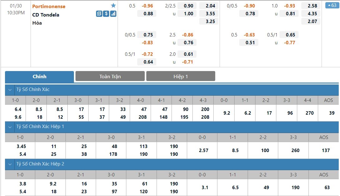 Tip kèo Châu Á hiệp 1: Chọn Tondela +1/4
