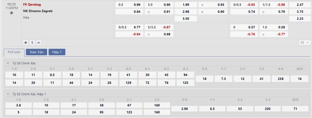 Tip kèo tỷ số hiệp 1: Qarabag 0-0 Dinamo Zagreb