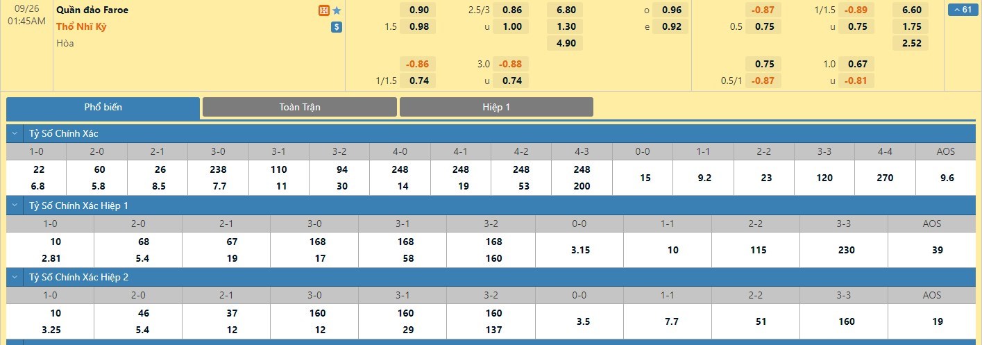 Trong 5 trận đấu gần nhất của mình, Quần đảo Faroe đã có 2 trận đấu mang về được cho mình ít nhất là 1 bàn thắng trong hiệp đấu đầu tiên. Còn với Thổ Nhĩ Kỳ, đội bóng này cũng đã sở hữu 5 lần sút tung lưới đối phương trong 45 phút đầu tiên. Dẫu vậy thì với tỷ lệ kèo hiệp 1 ở trận đấu này được đưa ra là -1/2 trái, người chơi nên tin tưởng vào đội khách trận này.
