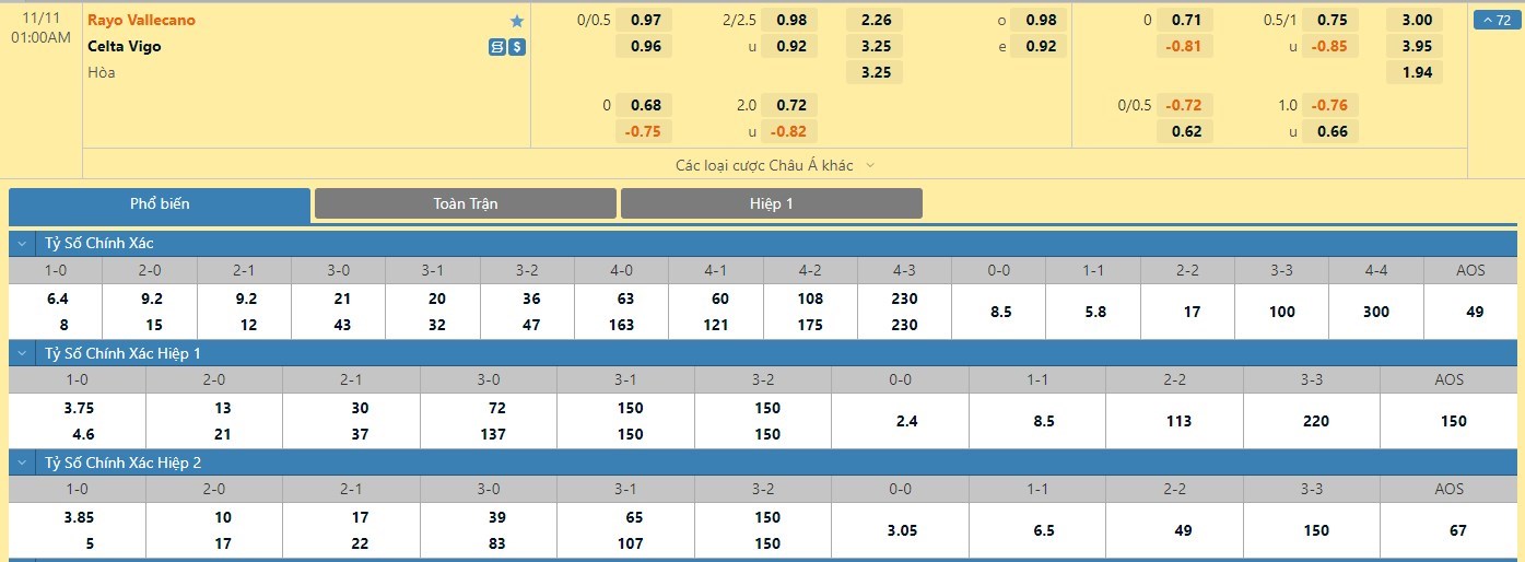 Tip kèo tỷ số hiệp 1: Rayo Vallecano 0-0 Celta Vigo