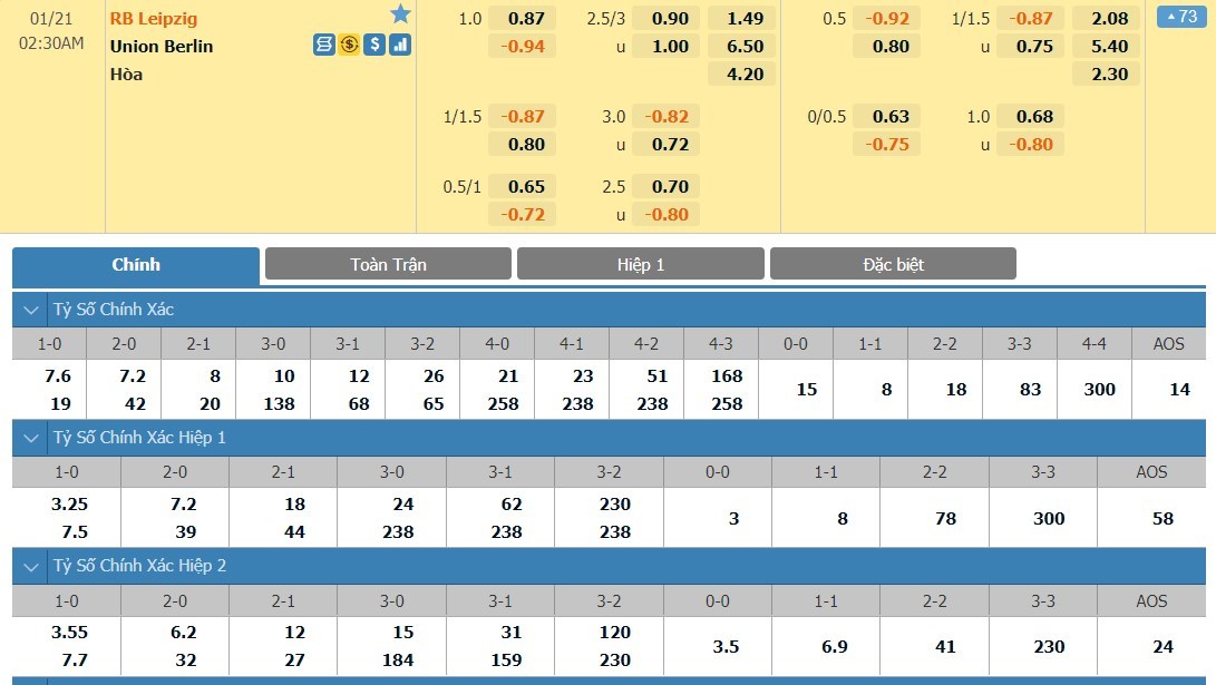 Tip kèo tỷ số hiệp 1: RB Leipzig 1-0 Union Berlin
