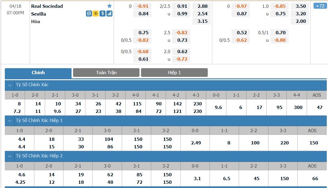 Đánh giá dựa theo phong độ, Real Sociedad đang ở trong 4 lượt trận gần nhất liên tiếp không biết mùi chiến thắng (hòa 2, thua 2). Nhìn sang phần sân đối diện, Sevilla bước tới trận đấu này trong tâm thế vô cùng tự tin. Họ đang duy trì mạch 6 trận liên tiếp bất bại với 4 chiến thắng và 2 trận hòa. Dưới con mắt của các nhà đầu tư, Sevilla là ô cược xứng đáng nhận sự tin tưởng với thông số thắng kèo châu Á 5/6 trận gần đây.