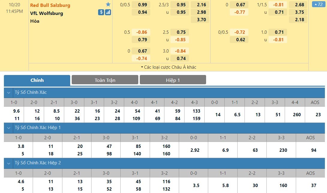 Tip kèo tỷ số hiệp 1: Red Bull Salzburg 0-0 Wolfsburg