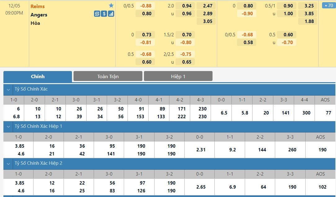 Nếu chỉ xét về thứ hạng và điểm số thì chắc chắn đội khách đang được đánh giá cao hơn. Tuy nhiên nhìn vào phong độ thi đấu thì rõ ràng là chủ nhà đang vượt trội hoàn toàn. Hơn nữa trận tới Reims còn có lợi thế được chơi trên sân nhà. Vì vậy việc lựa chọn Angers ở kèo đấu này được cho là 1 quyết định hết sức phiêu lưu.
