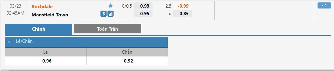 Tip kèo tỷ số hiệp 1: Rochdale 0-0 Mansfield
