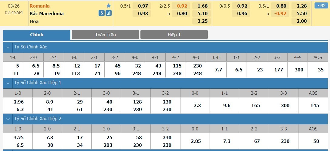 Tip kèo tỷ số hiệp 1: Romania 1-1 Bắc Macedonia