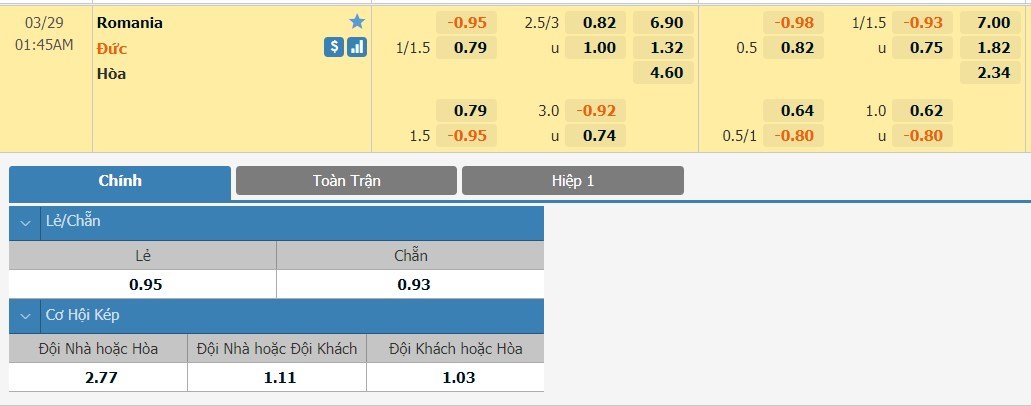 Tip kèo tỷ số hiệp 1: Romania 0-1 Đức