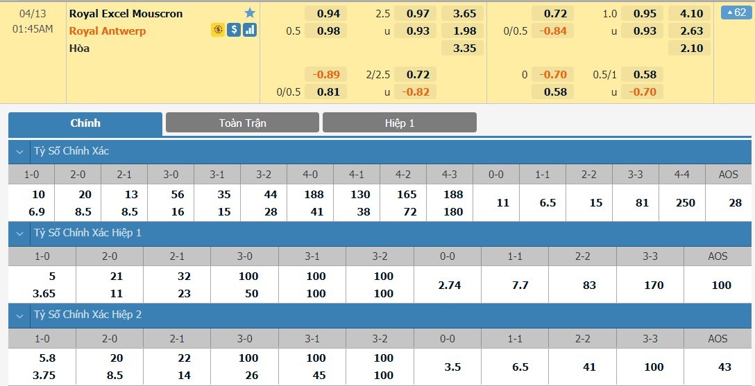 Tip bóng đá Royal Excel Mouscron vs Royal Antwerp , hôm nay 13/04/2021