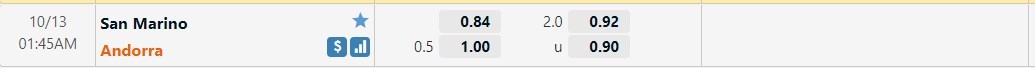 Tip kèo tỷ số hiệp 1: San Marino 0-0 Andorra