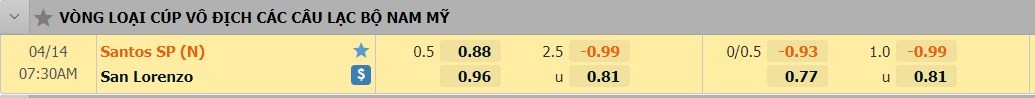 Rõ ràng, Santos được đánh giá cao hơn khá nhiều so với đối thủ. Kèo cả trận cho thấy Santos vẫn chấp 1/2 bàn so với đối thủ San Lorenzo. Họ có lợi thế lớn về tâm lý khi thắng 3-1 trong trận lượt đi và còn được thi đấu trên sân nhà. Kèo chấp của đội bóng Brazil có vẻ chưa đủ sâu nên sẽ an toàn nếu theo cửa Santos trong trận này. Chắc chắn thế trận sẽ hướng đến tấn công nhiều hơn trong 45 phút tiếp theo và khả năng có bàn thắng là rõ ràng.