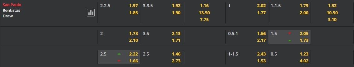 Tip kèo tỷ số hiệp 1: Sao Paulo 2-0 Rentistas