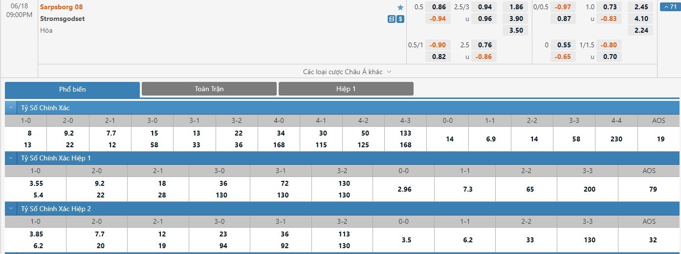 Tip kèo tỷ số hiệp 1: Sarpsborg 1-1 Stromsgodset