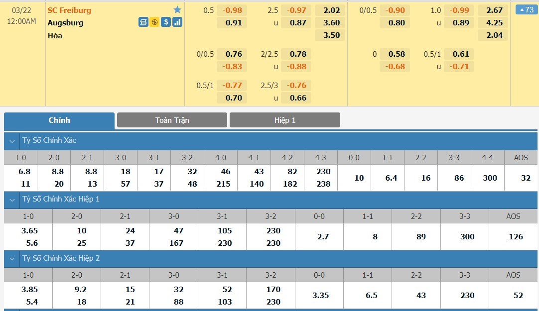 Nhà cái dành cho SC Freiburg vị thế đội bóng chiếu trên ở trận đấu này với mốc chấp -1/2 bàn nhưng theo chuyên gia nhận định thì đội khách Augsburg là lựa chọn an toàn hơn. Chính trên sân nhà của mình, SC Freiburg đã phải chịu cảnh tay trắng trong cả 2 lần gần nhất đón tiếp các đối thủ. Cả 3 cuộc đối đầu gần nhất giữa SC Freiburg và Augsburg đều khép lại mà không xuất hiện nhiều hơn 2 bàn thắng.