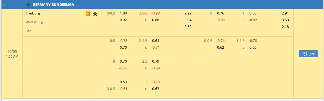 SC Freiburg có lợi thế được chơi trên sân nhà và họ sẽ cần phải khai thác triệt để ưu thế này nhằm mang về cho mình kết quả có lợi. Song điều đáng nói là thành tích trên sân nhà của SC Freiburg thời gian gần đây là không tốt chút nào. Họ đã để thua 3/4 trận sân nhà gần nhất. Hàng thủ của SC Freiburg đang thực sự gặp vấn đề khi họ nhận 10 bàn thua trong 3 lượt trận gần nhất. Từ những con số này thì người chơi càng có cơ sở để đặt niềm tin vào khả năng đội khách Wolfsburg sẽ tìm kiếm được điểm số trong trận đấu sắp tới.