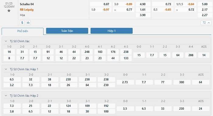 Thật khó để đặt niềm tin vào đội chủ nhà Schalke 04 trận này khi họ là ô cược thua kèo châu Á trong 3 trận đấu liên tiếp gần đây. Đặc biệt là trong cả 3 trận đấu vừa qua thì đội bóng này đều không thể nào ghi bàn. Lịch sử đối đầu cũng chỉ rõ sự thực rằng gần như không tồn tại chút cơ hội nào để Schalke 04 nghĩ đến việc giành điểm trong màn so tài sắp tới. Cả 3 lần đọ sức gần nhất giữa hai đội thì chiến thắng chung cuộc đều gọi tên RB Leipzig.