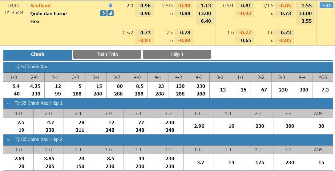 Tip kèo tỷ số hiệp 1: Scotland 1-0 Quần đảo Faroe
