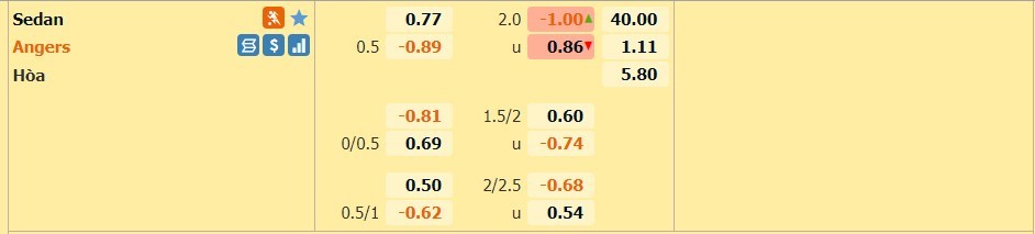 Sedan có lẽ cũng không đặt tham vọng gì nhiều khi biết mình sẽ phải chạm trán với một đại diện đến từ giải VĐQG Pháp như Angers. Lần gần nhất hai đội bóng này chạm trán với nhau là khi họ còn chung chơi tại giải hạng 2 Pháp vào mùa bóng 2012/13. Quãng thời gian từ đó đến nay đã có nhiều sự thay đổi và thực lực của hai đội bóng giờ đã có khoảng cách không thể nào phủ nhận. Chuyên gia 11bet nhận định trận đấu này sẽ có một kết quả thắng cách biệt dành cho Angers.