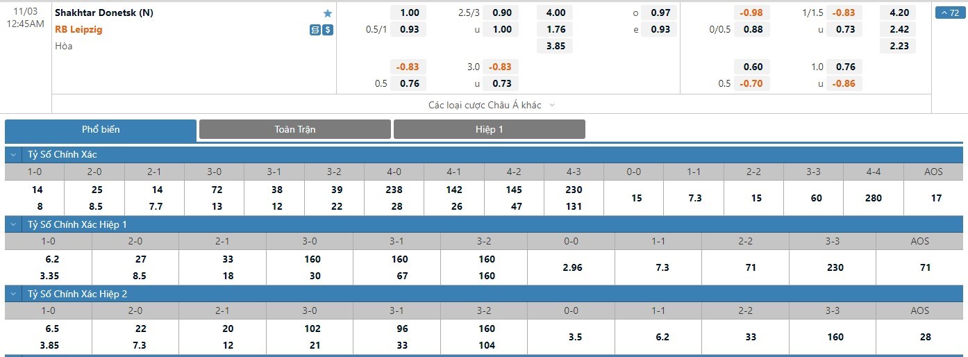 Trong 5 trận đấu gần nhất, Shakhtar Donetsk đã có 3 trận đấu mang về được cho mình ít nhất là 1 bàn thắng trong hiệp đấu đầu tiên. Còn với RB Leipzig, đội bóng này đã có 3 lần làm được điều này trong 45 phút đầu tiên. Với tỷ lệ kèo hiệp 1 ở trận đấu này được đưa ra là -1/4 trái thì người chơi nên tin tưởng vào đại diện nước Đức trận này.