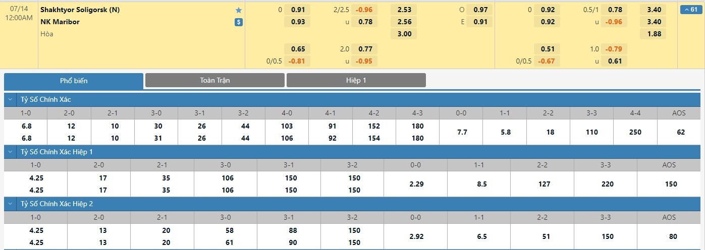 Nếu như Shakhtyor Soligorsk có được cho mình 2/5 trận đấu gần nhất mang về 1 bàn thắng trong hiệp đấu đầu tiên thì Maribor chỉ có 1 lần làm được điều này. Với tỷ lệ kèo hiệp 1 là đồng banh thì người chơi nên tin tưởng vào tỷ số hòa 0-0.