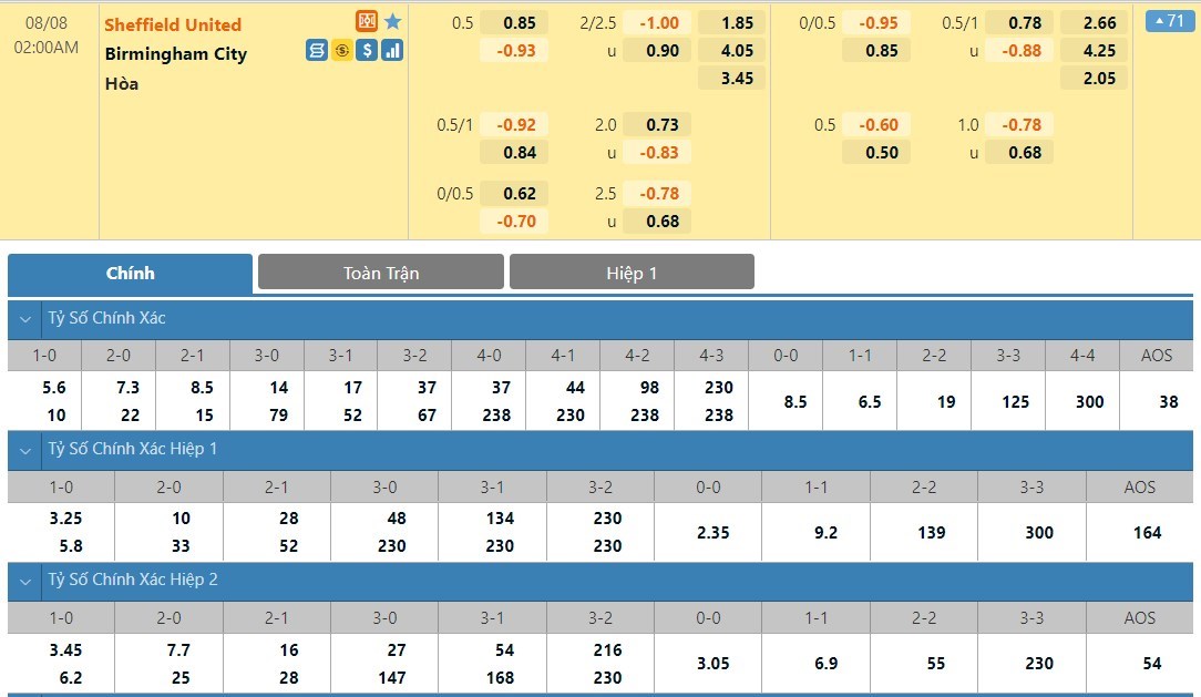Tip kèo tỷ số full time: Sheffield United 1-1 Birmingham