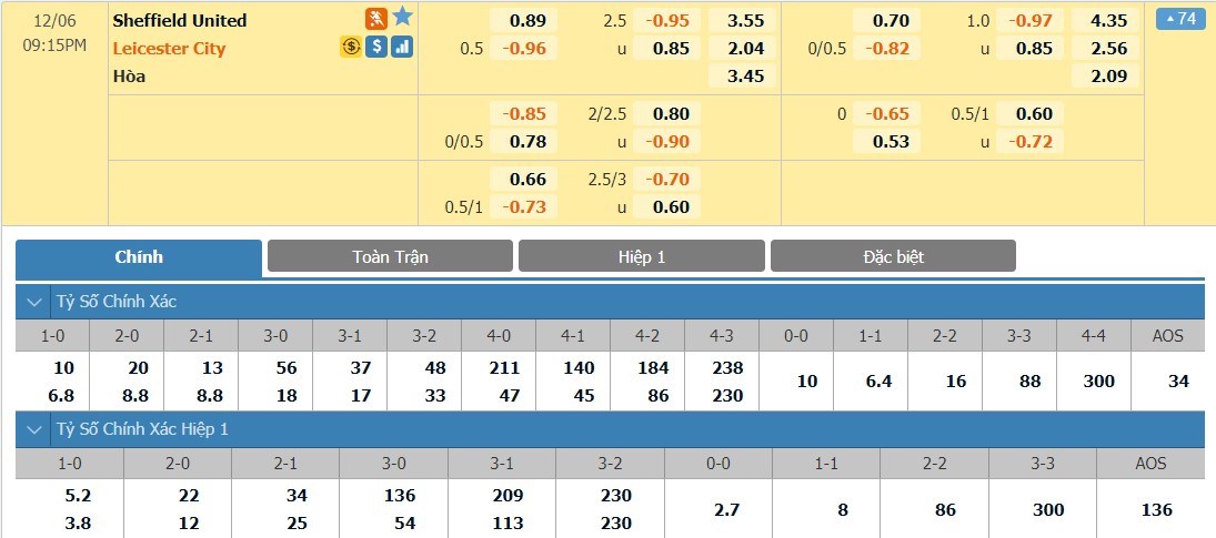 Tip kèo tỷ số hiệp 1: Sheffield United 0-0 Leicester City