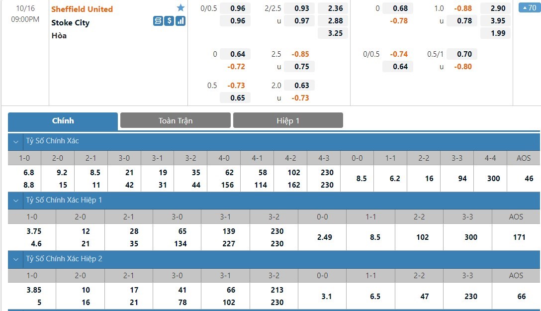 Tip kèo tỷ số hiệp 1: Sheffield United 0-0 Stoke
