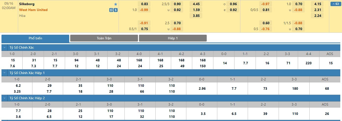 Trong 5 trận đấu gần nhất, Silkeborg đã có 2 trận đấu mang về được cho mình ít nhất là 4 bàn thắng trong hiệp đấu đầu tiên. Còn với West Ham, đội bóng này chỉ sở hữu 1 lần làm rung lưới đối phương trong 45 phút đầu tiên. Với tỷ lệ kèo hiệp 1 ở trận đấu này được đưa ra là -1/4 trái thì người chơi nên tin tưởng vào đội khách trận này.