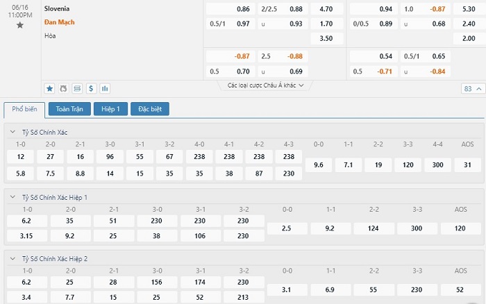 Tip kèo tỷ số hiệp 1: Slovenia 0-0 Đan Mạch