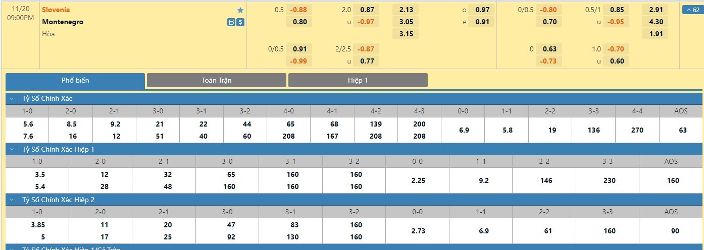 Trong 5 trận đấu gần nhất của mình, Slovenia đã có 2 trận đấu mang về được cho mình ít nhất là 1 bàn thắng trong hiệp đấu đầu tiên. Còn với Montenegro, đội bóng này cũng chỉ có 1 lần làm được điều này trong 45 phút đầu tiên. Người chơi vẫn nên tin tưởng vào kết quả hòa trong hiệp 1 để có sự an toàn lớn hơn.