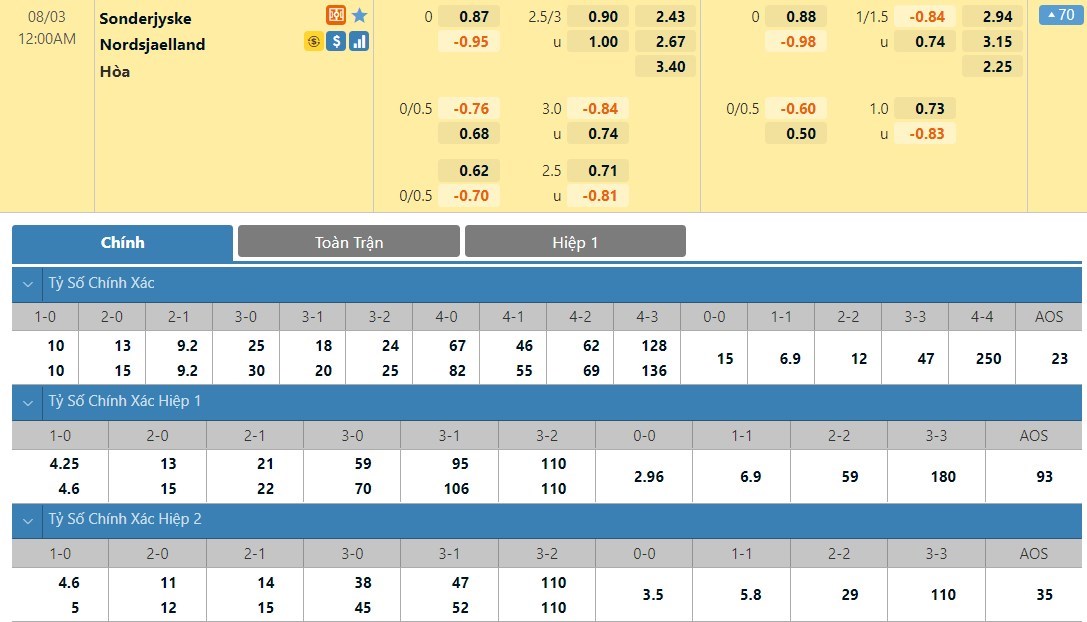 Tip kèo Châu Á hiệp 1: Chọn Sonderjyske +1/4