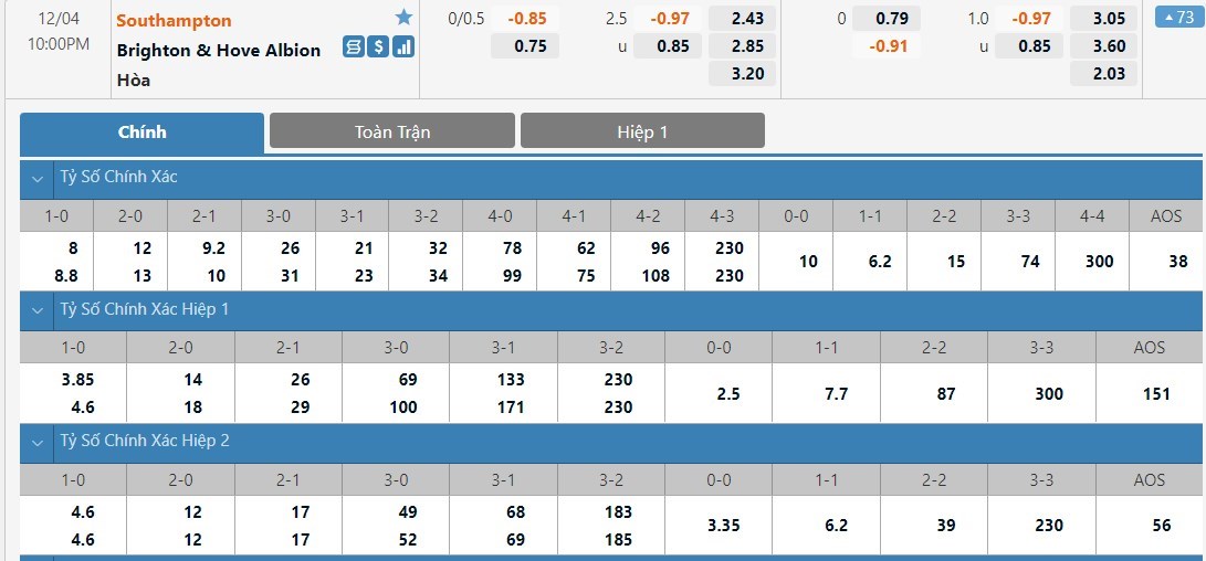 Trong 4 lần gần nhất hành quân tới làm khách đến sân của Southampton thì Brighton đều giữ được thành tích bất bại, trong đó có 3 trận hòa. Trong bối cảnh đội chủ nhà Southampton không có được sự chuẩn bị tốt nhất về mặt phong độ thì chuyên gia 11bet cho rằng cơ hội sẽ mở ra đối với Brighton. Và trong bối cảnh mà sự chênh lệch về trình độ giữa đôi bên là không quá lớn thì nhiều khả năng kết quả trên sẽ 1 lần nữa được lặp lại ở cuộc đối đầu tới. Thống kê 6 trận đấu gần nhất Southampton chơi trên sân nhà của mình thì chỉ có 1 trận đấu xuất hiện nhiều hơn 2 bàn thắng.