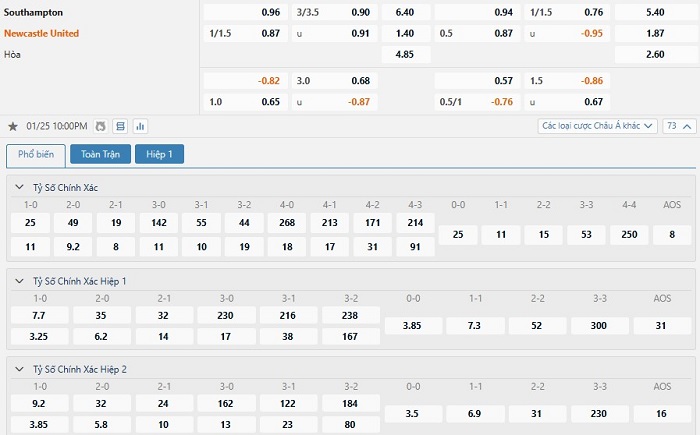 Tip kèo tỷ số hiệp 1: Southampton 0-1 Newcastle