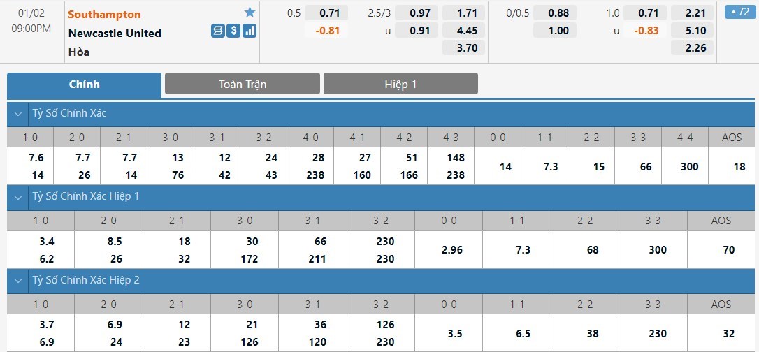 Trong quá khứ những cuộc đọ sức giữa Southampton và Newcastle United thường khá bùng nổ về mặt bàn thắng. Ngay như ở trận lượt đi thì đôi bên cũng đã sút tung lưới nhau tới 4 lần. Vì vậy ở kèo tài xỉu cả trận thì người chơi vẫn nên ưu tiên lựa chọn tài để có cơ hội ăn cao hơn.