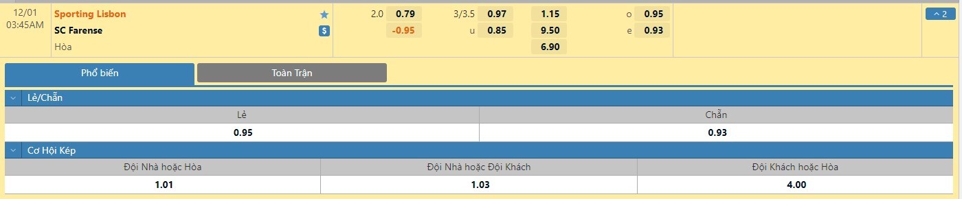 Trong 5 trận đấu gần nhất của mình, Sporting CP đã có 4 trận đấu mang về được cho mình ít nhất là 1 bàn thắng trong hiệp đấu đầu tiên. Còn với Farense, đội bóng này đã có 2 lần làm được điều này trong 45 phút đầu tiên. Với tỷ lệ kèo hiệp 1 là -3/4 trái thì người chơi nên tin tưởng vào chủ nhà Sporting CP sẽ là những người vượt lên dẫn trước ngay trong hiệp đấu đầu tiên trận đấu.