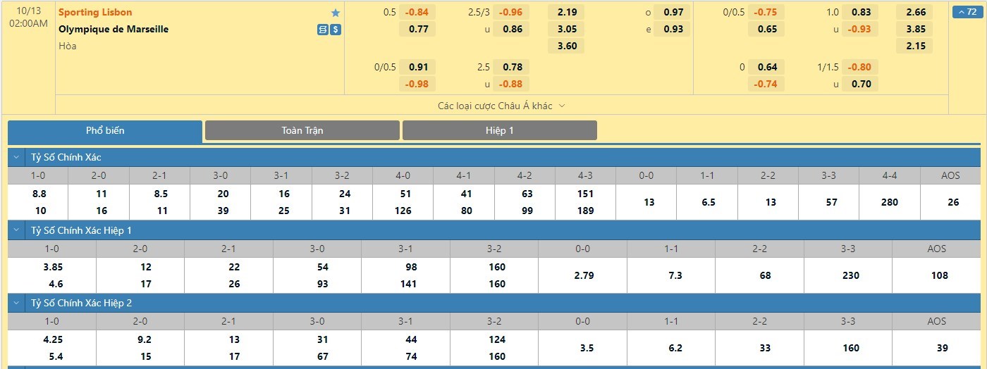 Trong 5 trận đấu gần nhất, Sporting Lisbon đã có 3 trận đấu mang về được cho mình ít nhất là 1 bàn thắng trong hiệp đấu đầu tiên thì Marseille cũng đã có 3 lần làm được điều này trong 45 phút đầu tiên. Với tỷ lệ kèo hiệp 1 ở trận đấu này được đưa ra là chủ nhà Sporting CP chấp 1/4 trái thì người chơi nên tin tưởng vào kết quả có lợi dành cho đội khách trận này.