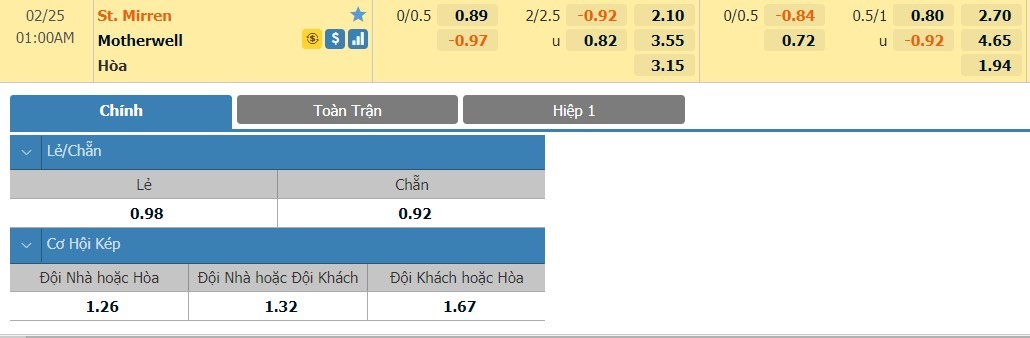 5 cuộc đọ sức gần đây nhất giữa 2 đội, St. Mirren hoàn toàn bất bại khi có cho mình 2 thắng và 3 hòa trước Motherwell. Tuy nhiên, thời điểm hiện tại, phong độ lại cho thấy sự vượt trội mà đội khách tạo ra. Motherwell thắng 3 trong 5 vòng gần nhất còn St. Mirren chỉ có 1 lần hưởng niềm vui trọn vẹn trong thời gian trên. Dù là thế cửa trên nhưng việc St. Mirren chỉ thắng 3 trong 14 trận sân nhà trước đó dự báo cho chuyên gia 11bet về kịch bản sẽ có điểm cho đội khách. Người chơi nên cân nhắc tới việc đặt cược vào đội bóng chiếu dưới nhận tỷ lệ chấp +1/4 bàn.