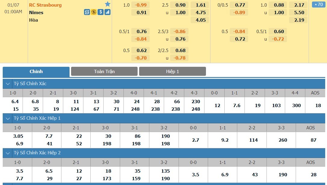 Tip kèo tỷ số hiệp 1: Strasbourg 1-0 Nimes